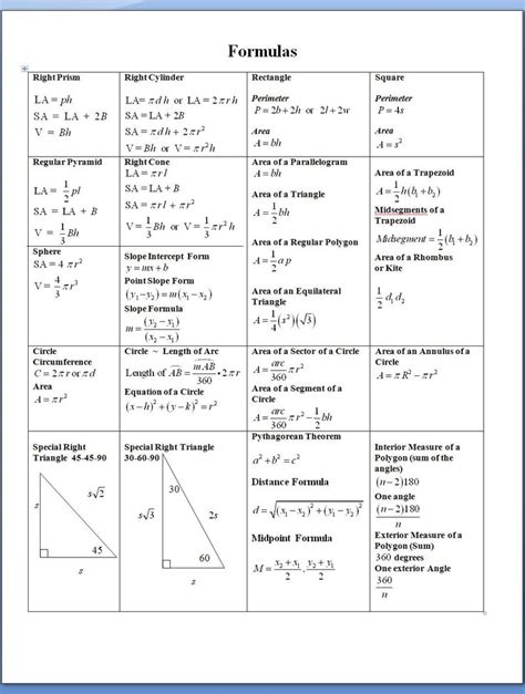 Download act math geometry formula cheat sheet Doc